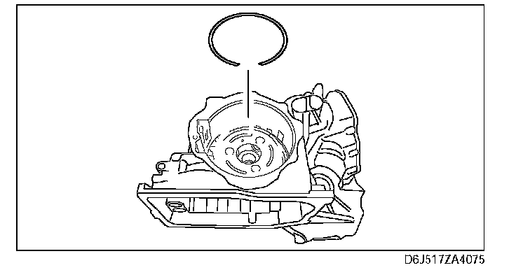 Note: Rotate the engine stand so that the oil pan faces downward. Pull the front internal gear and one-way clutch component a little until the groove for the snap ring appears, then install the snap ring.