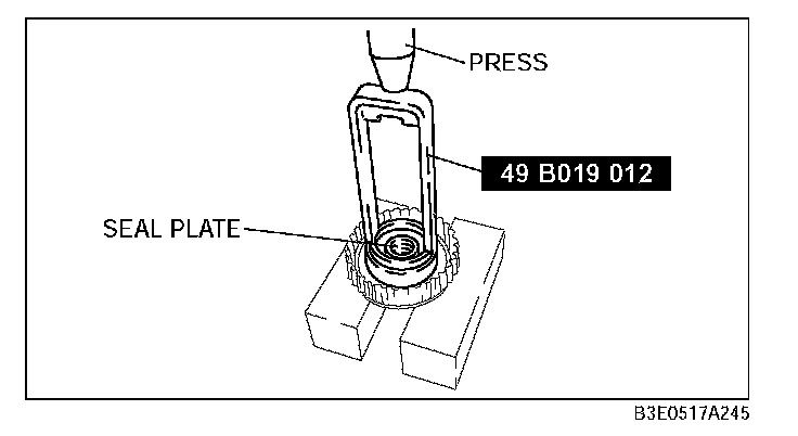 Caution: Depress the seal plate only enough to remove the snap ring. Overpressing will damage the seal plate assembly edges.