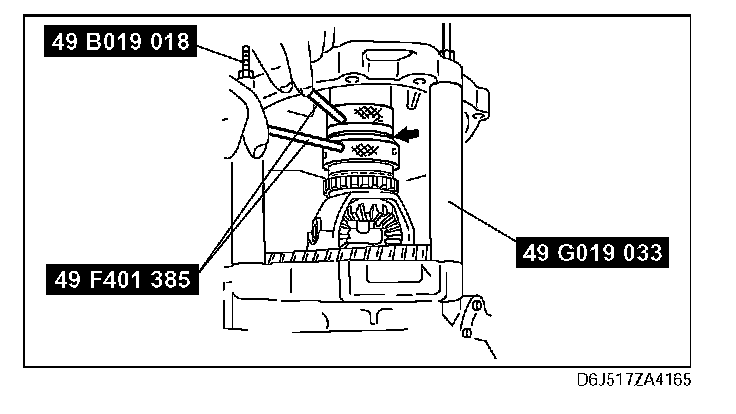 13. Adjust the clearance of the SST (selector) to obtain the specified preload/pull scale reading.