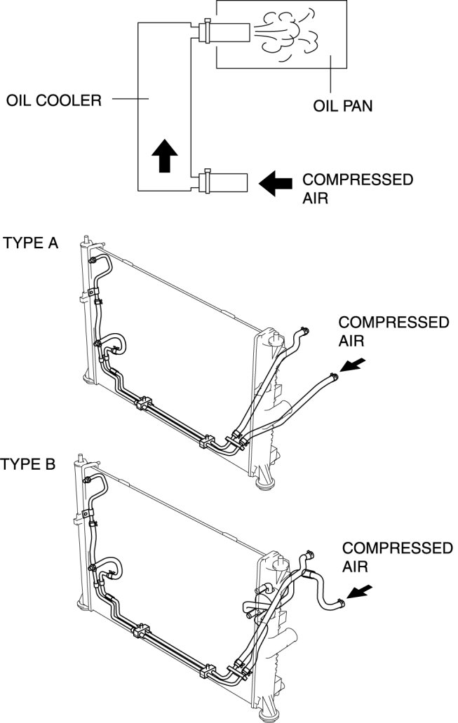 - If foreign material such as metal fragments or clutch facing remains even after the oil cooler is flushed repeatedly, replace the oil cooler (radiator).