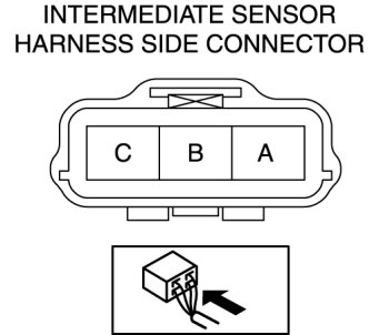 b. Measure the voltage at intermediate sensor connector terminal C (harness-side).