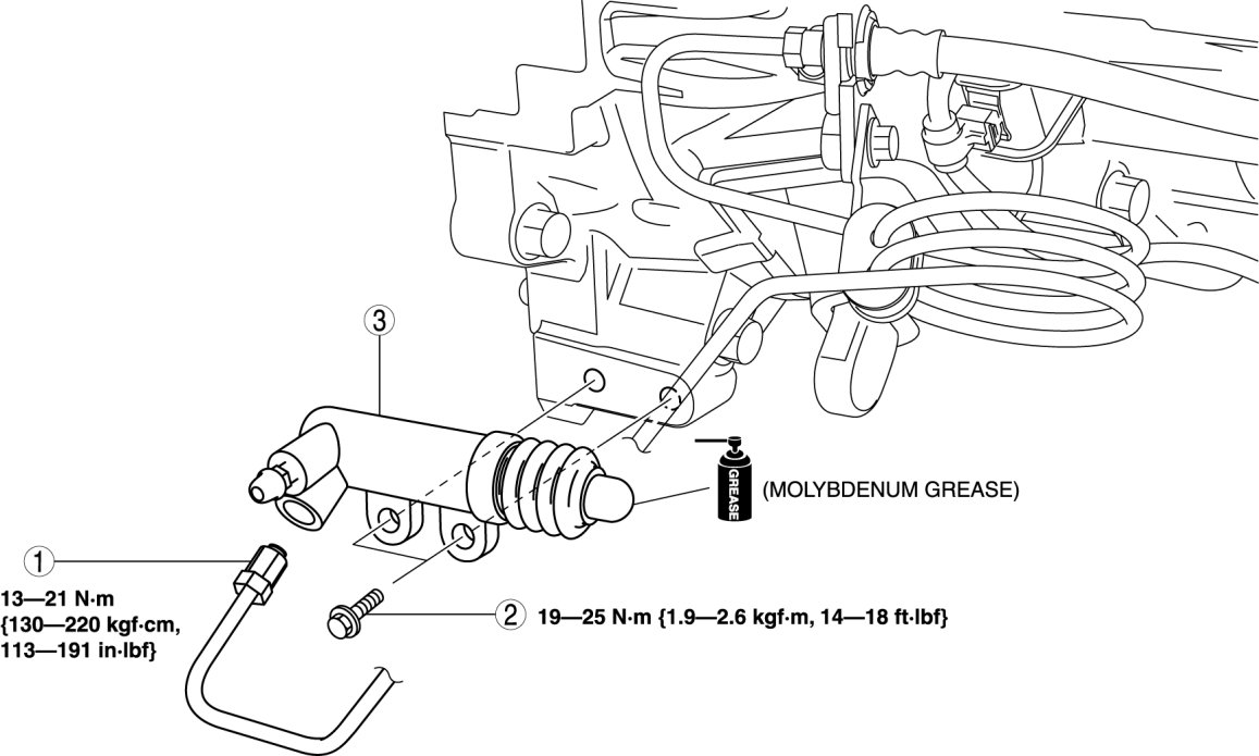 - If clutch system-related hydraulic parts are removed, supply brake fluid, bleed air, and inspect for fluid leakage after the installation.