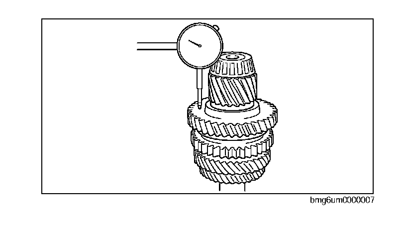 1st Gear Thrust Clearance Inspection1. Measure the 1st gear thrust clearance using a dial indicator.
