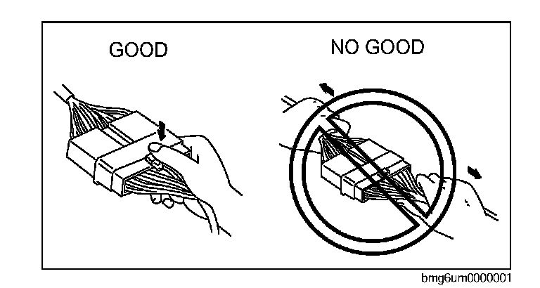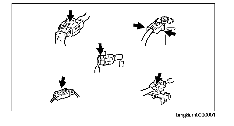 ^ Inspect the terminals of waterproof connectors from the connector side since they cannot be accessed from the wiring harness side.