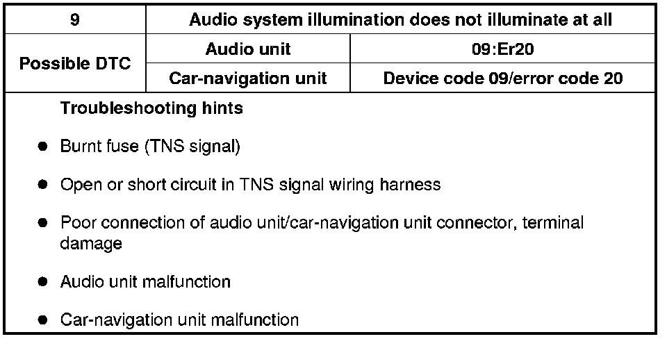 NO.9 NO AUDIO SYSTEM ILLUMINATION [ENTIRE AUDIO SYSTEM]