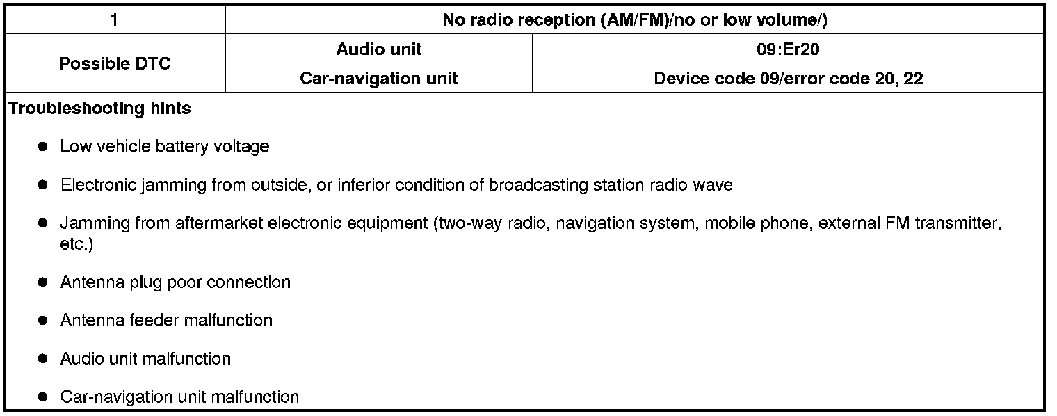 No.1 No Radio Reception (AM/FM)/No or Low Volume [Radio]