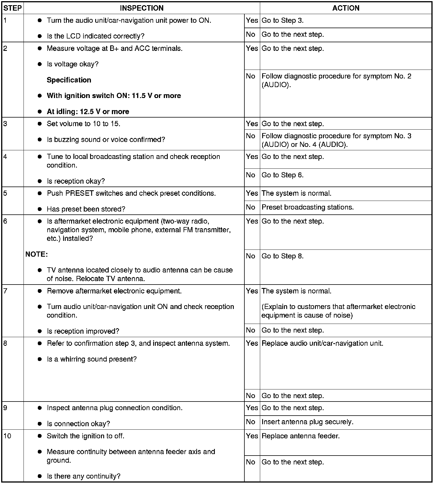 NO.1 NO RADIO RECEPTION (AM/FM)/NO OR LOW VOLUME [RADIO]