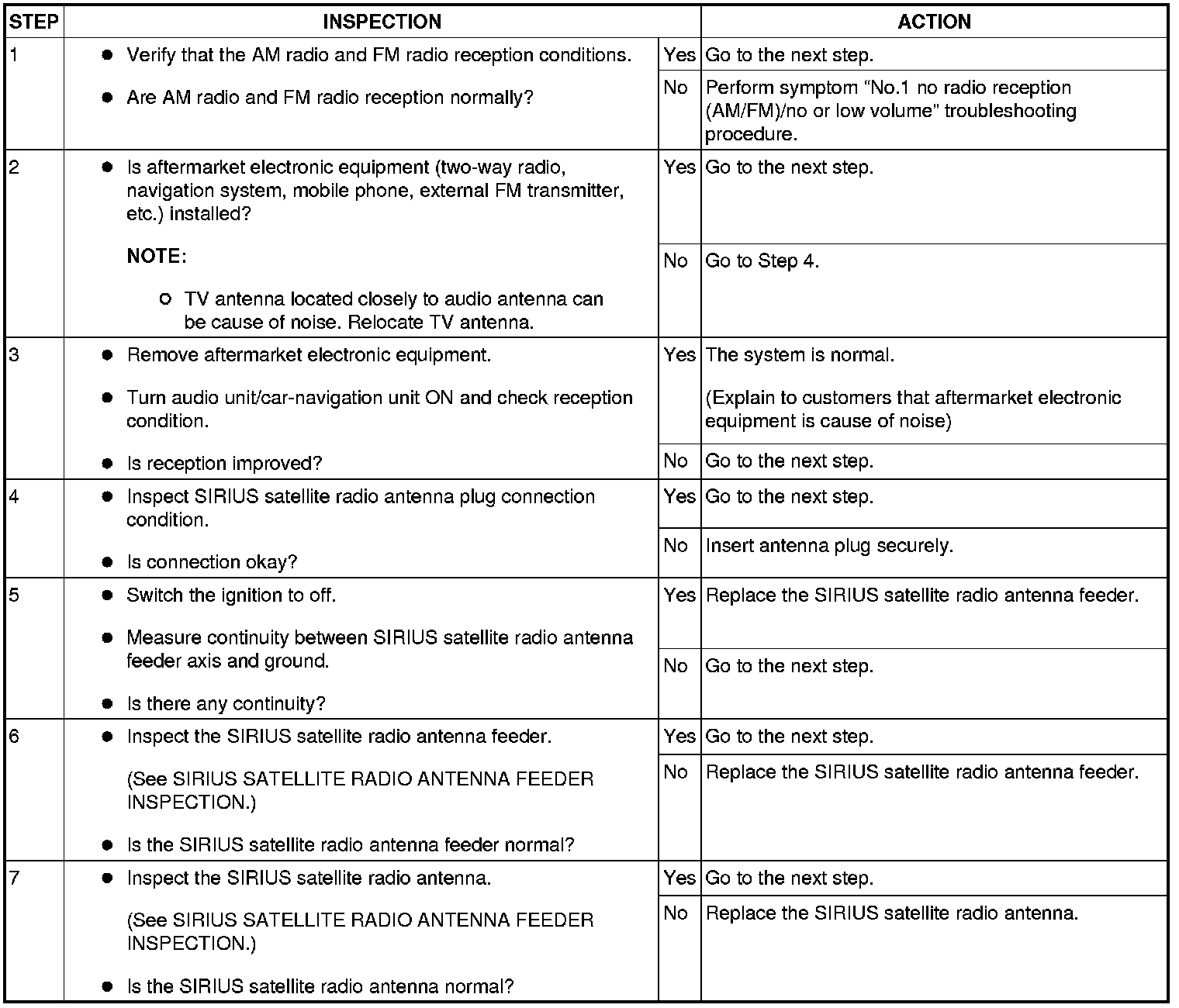 NO.2 NO RADIO RECEPTION (SIRIUS SATELLITE RADIO) [RADIO]
