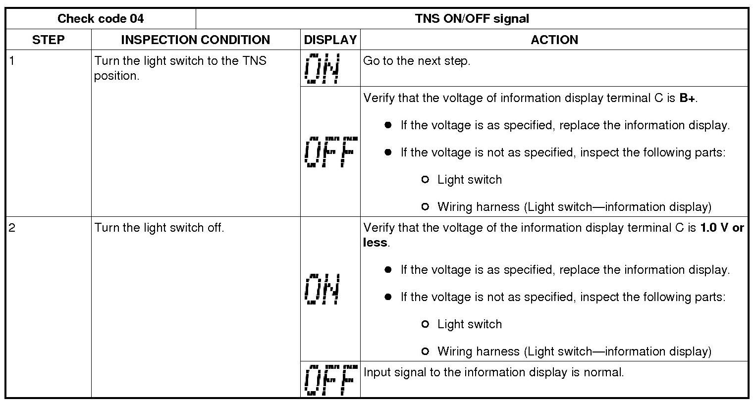 INFORMATION DISPLAY INPUT/OUTPUT CHECK MODE