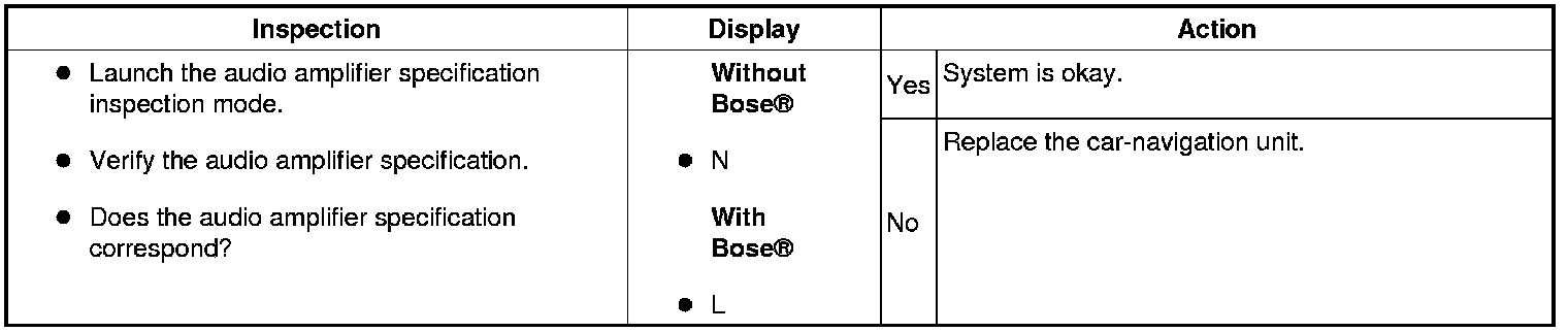 Diagnostic assist code "07" audio amplifier specification inspection