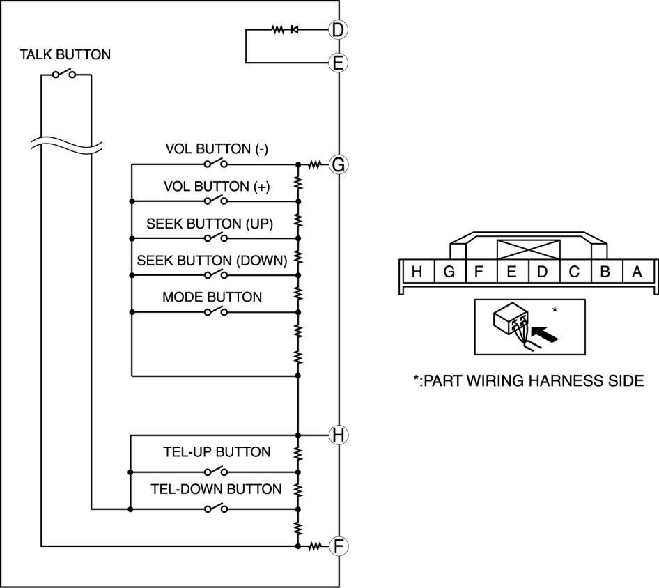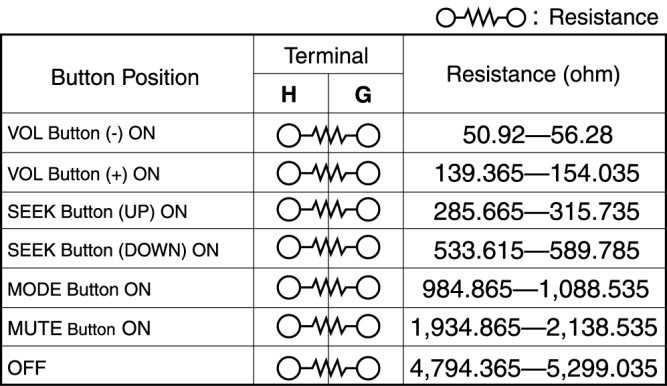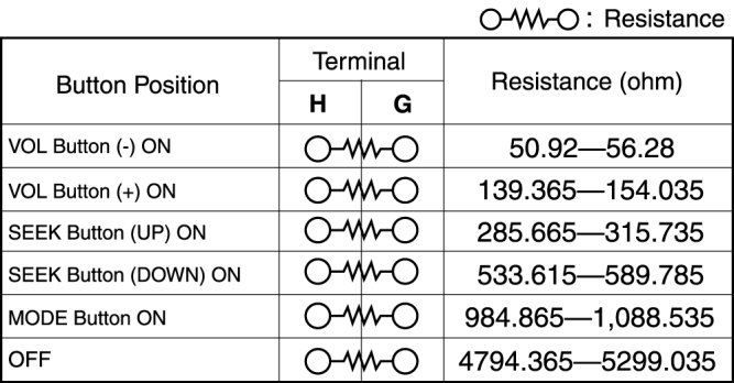 - If the resistance and continuity are not as indicated in the tables, replace the audio control switch.