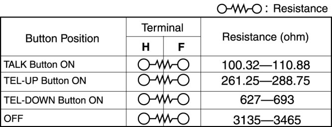 6. Verify the resistance and continuity between the audio control switch terminals.