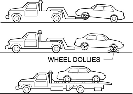 - A towed vehicle usually should have its drive wheels (front wheels) off the ground. If excessive damage or other conditions prevent this, use wheel dollies.