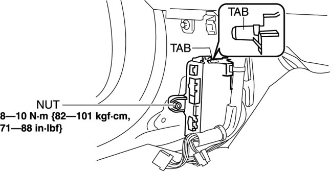 8. Remove the nut, then detach the tab to remove the BCM from the body.