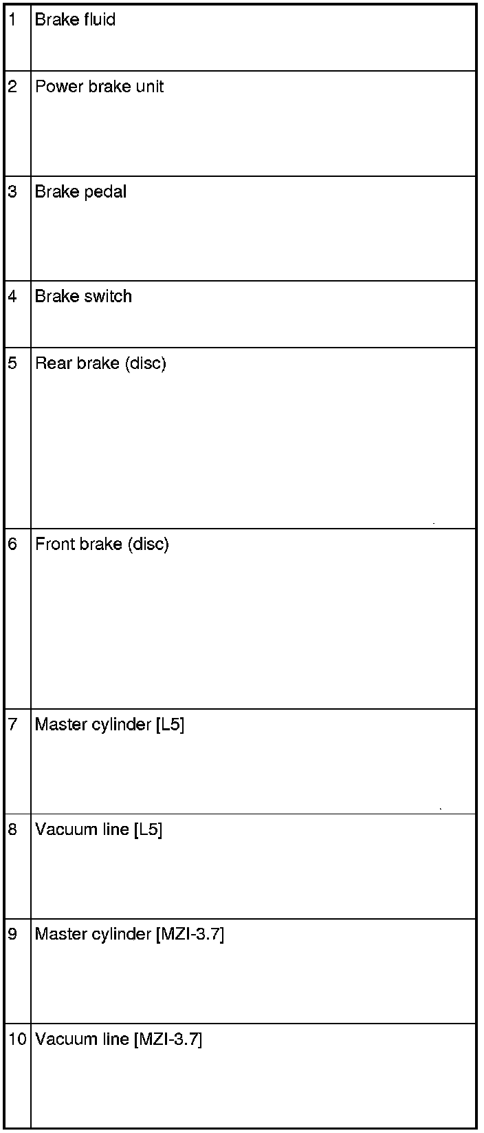 CONVENTIONAL BRAKE SYSTEM LOCATION INDEX