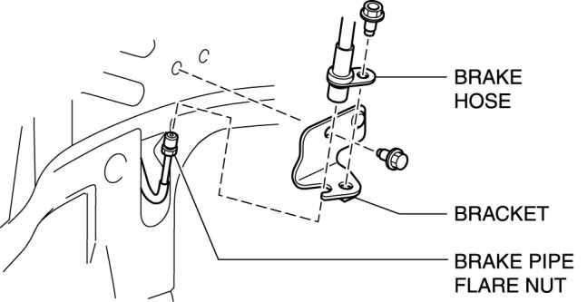 11. Remove the SSTs after the inspection and install the bracket, brake hose and brake pipe to their original positions. Brake Hose (Front) Removal/Installation