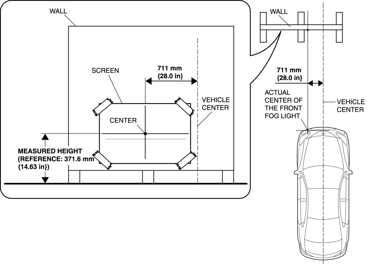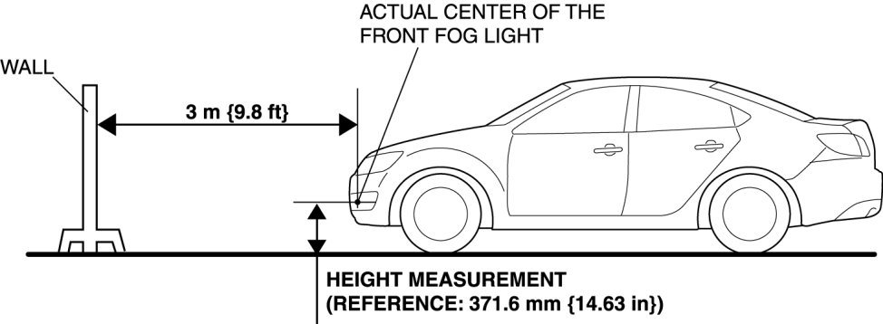 - Since the height of the vehicle varies depending on the vehicle situation, measure the height of the center of the front fog light using the actual vehicle.