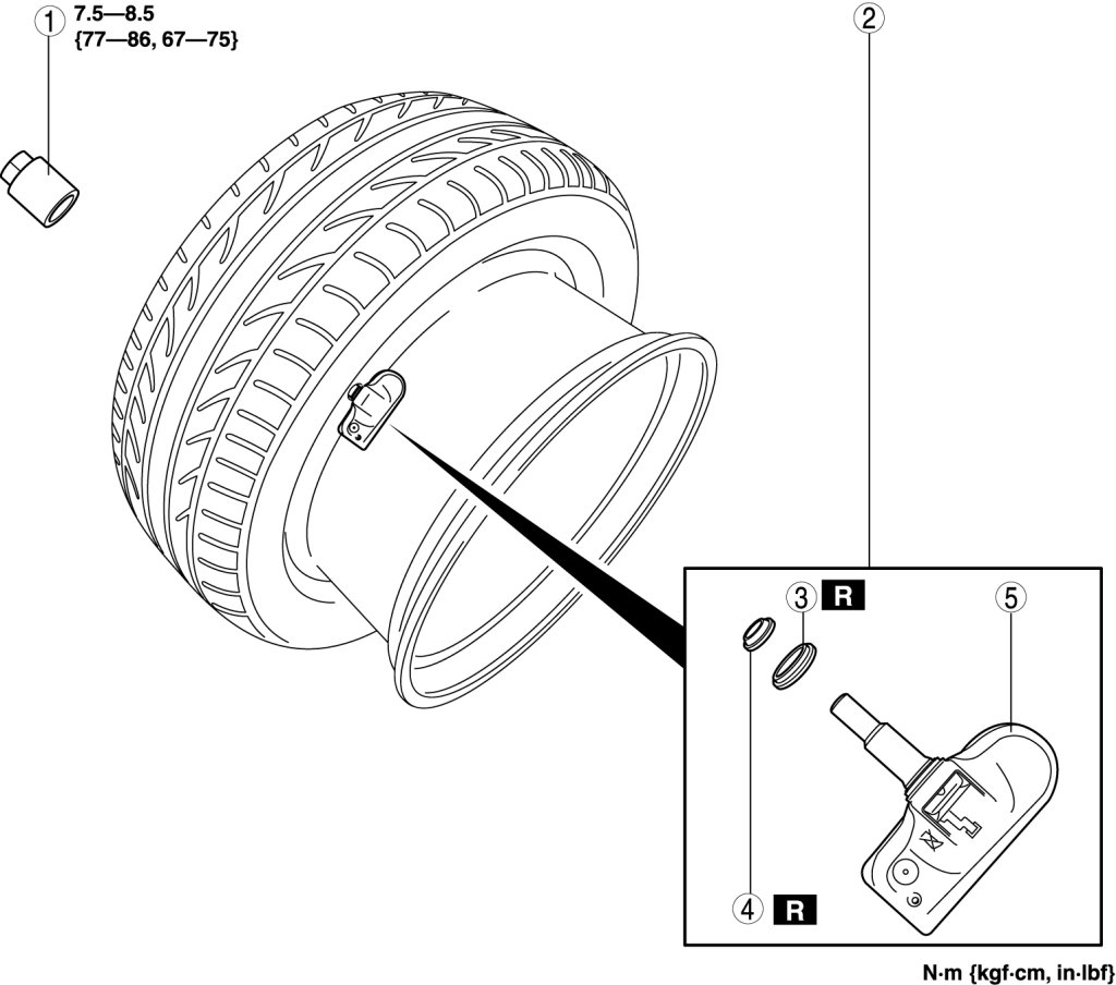 - A TPMS wheel unit has an exclusive valve core. If a valve core other than the exclusive one is installed, the wheel unit could be damaged due to the generation of rust. Always install the exclusive valve core for TPMS.