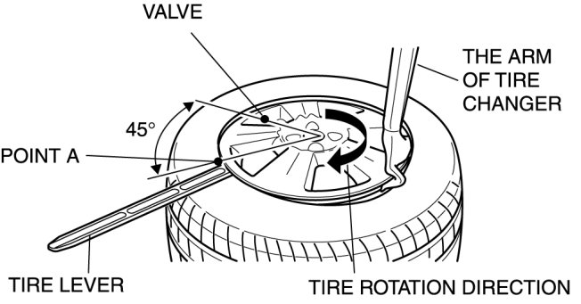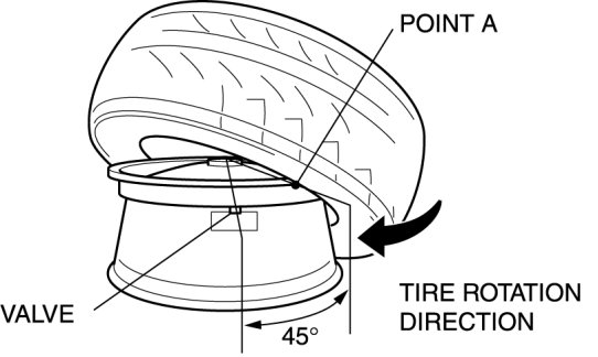 5. Set the tire at the point A (45° away from the valve hole).