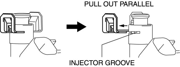 b. Pull the clip parallel to the injector groove, and remove it from the injector.