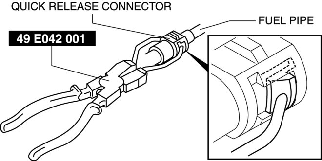 - When removing the quick release connector, either SST 49 E042 001 or 49 N013 103A (Part of 49 N013 1A0D) can be used.