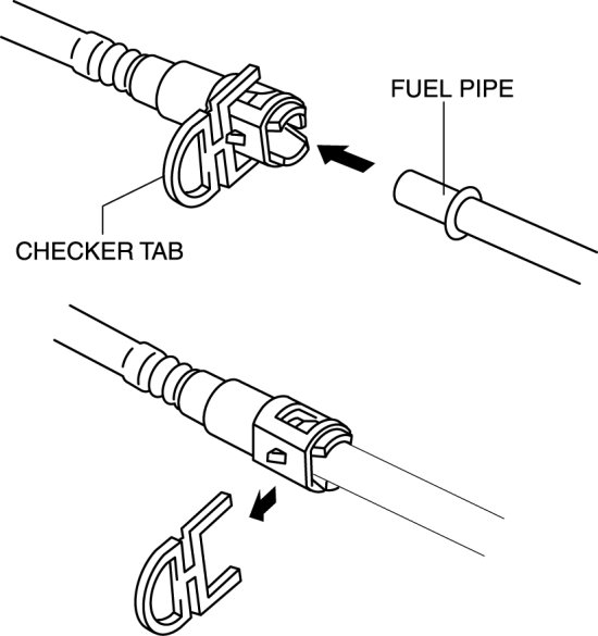 - A checker tab is integrated with the quick release connector for new fuel hoses and evaporative hoses. Remove the checker tab from the quick release connector after the connector is completely engaged with the fuel pipe.