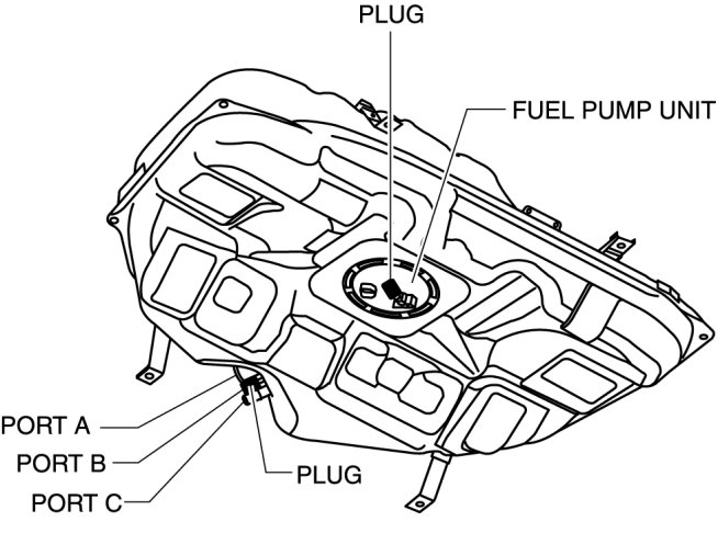 a. Plug the fuel pump unit pipe, ports B and C.