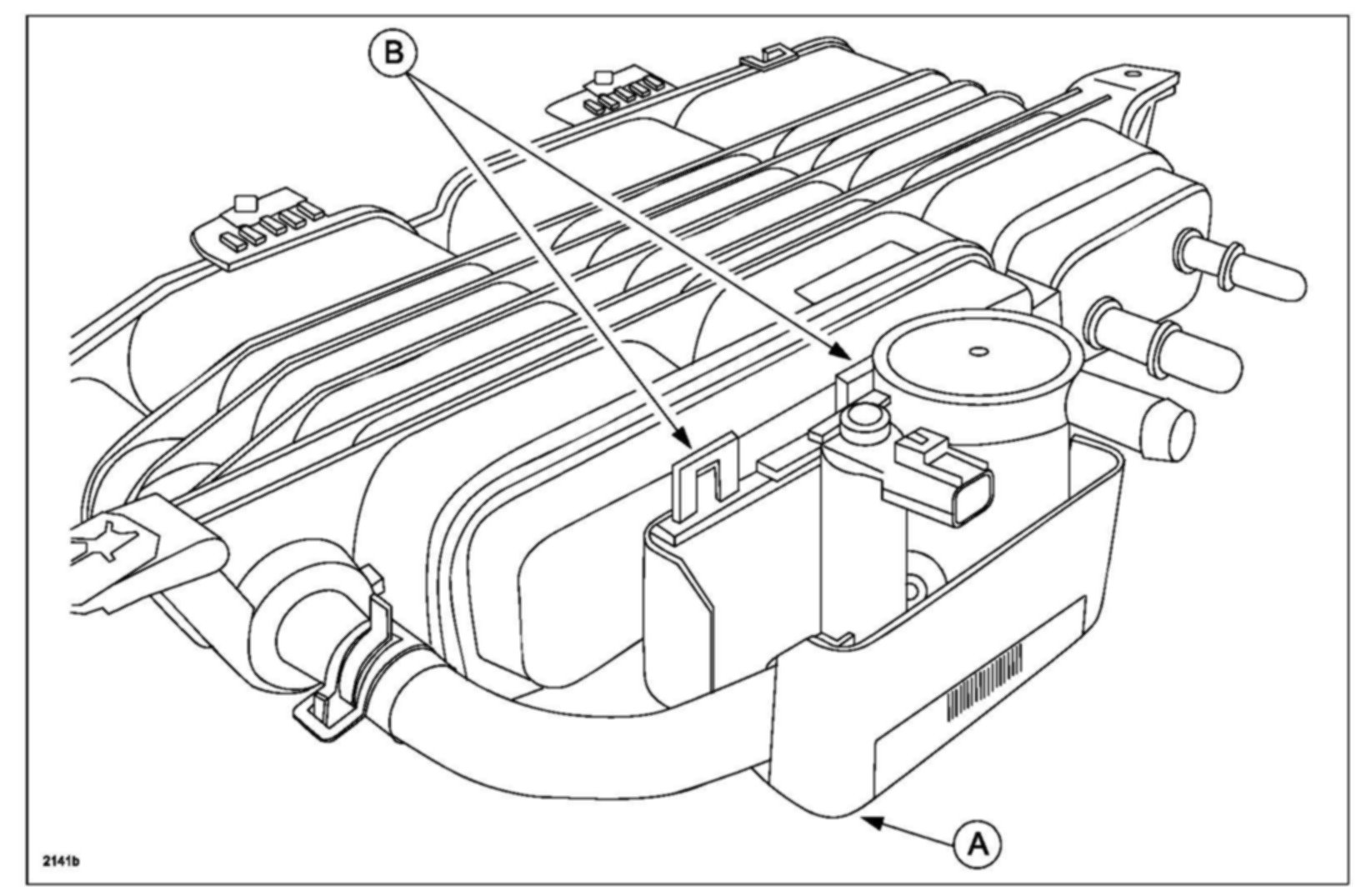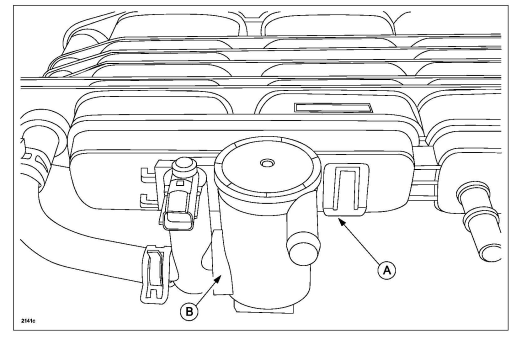 b. Remove bracket (A), with CVV and filter (B) together from canister body.