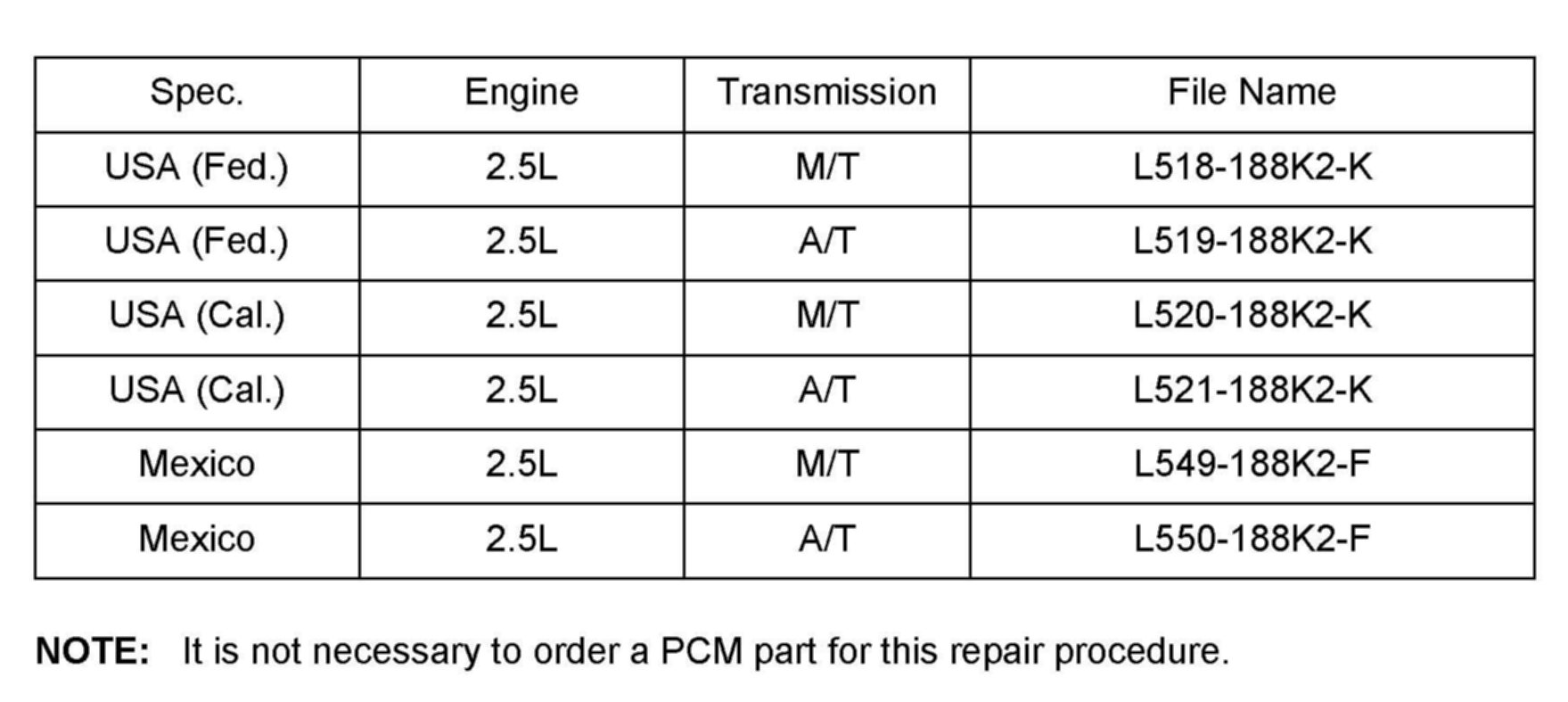 ^ Please be aware that PCM calibration part numbers and file names listed in any Service Bulletin may change due to future releases of IDS software, and additional revisions made to those calibrations for service related concerns.