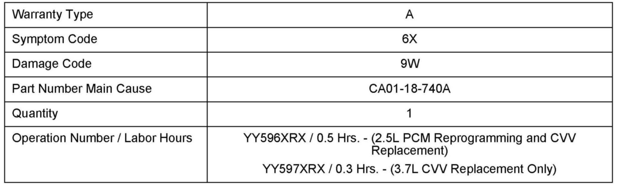 ^ This repair will be covered under Mazda's New Vehicle Limited Warranty term for a Powertrain Component.