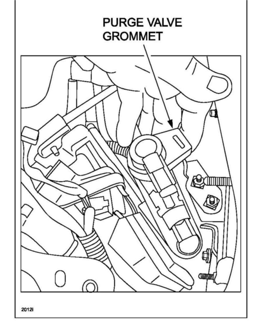 11. Locate purge valve assembly outboard from power brake unit and rearward of PCM.