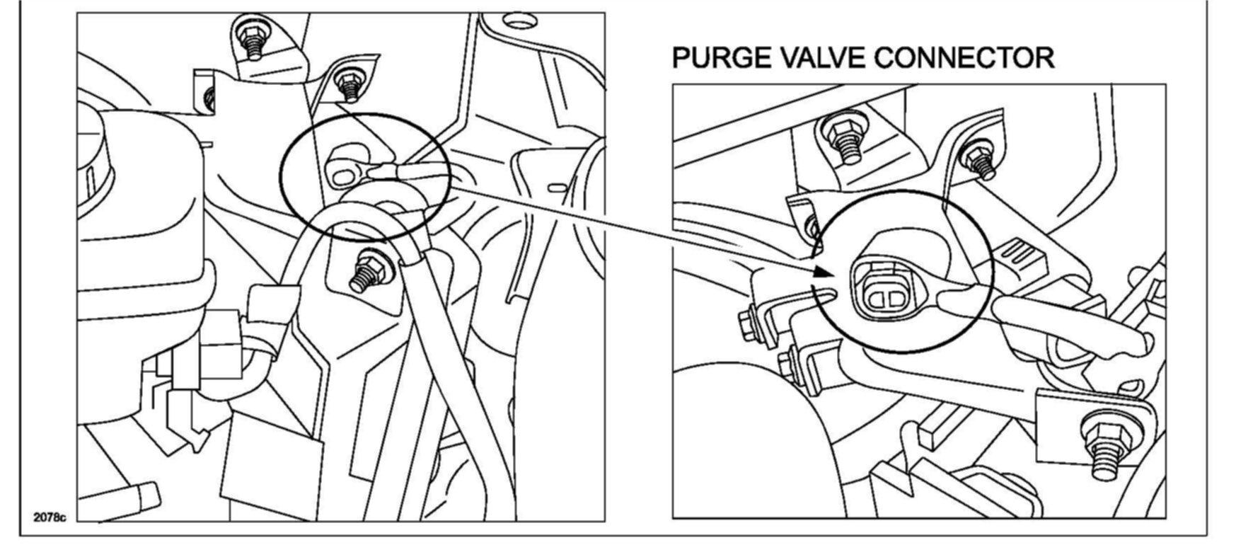 - If circuit tester shows voltage is outside of 0.5 - 0.7V range, purge connector terminals have not been connected properly; repair as necessary.