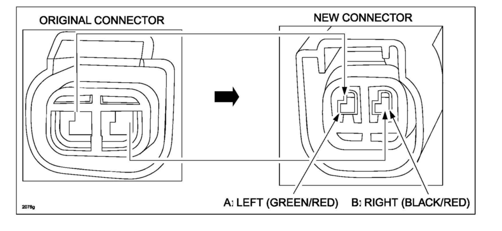 d. After inserting terminals into new connector, check the harness color. If they are inserted into the wrong side, correct them.