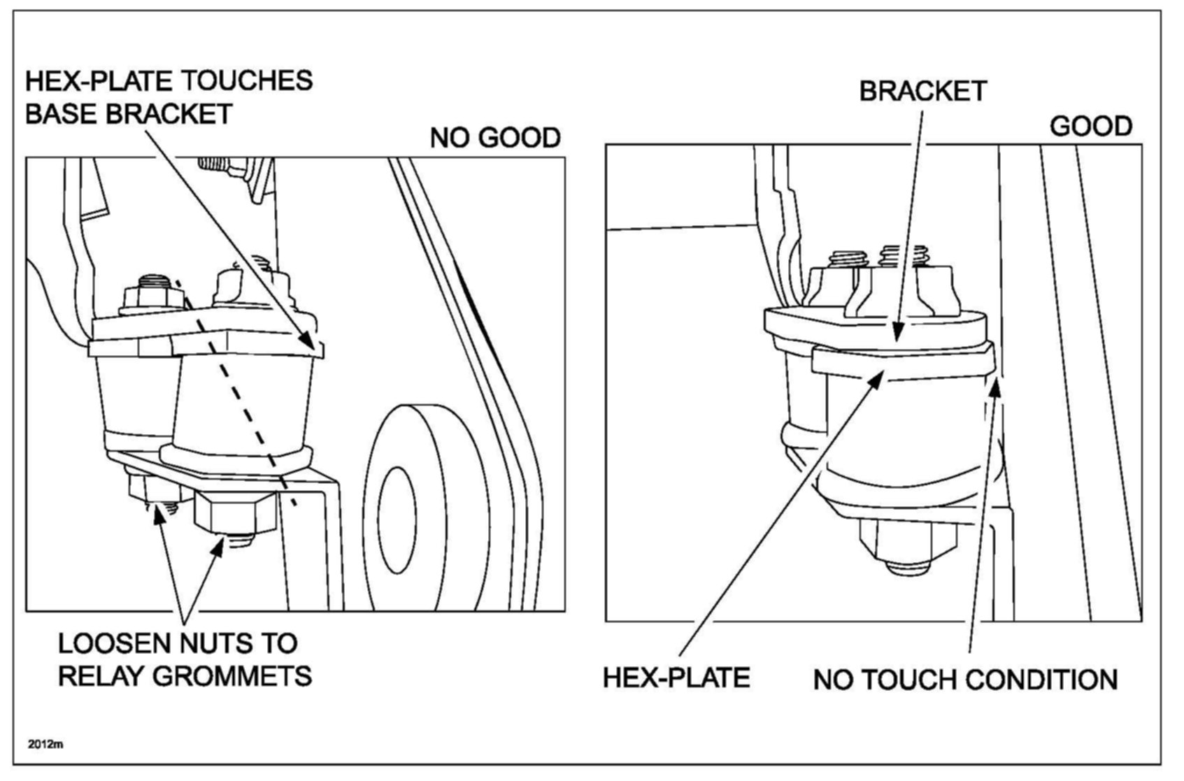 b. Re-torque two (2) nuts while maintaining no touch condition and grommets have little to no twist.