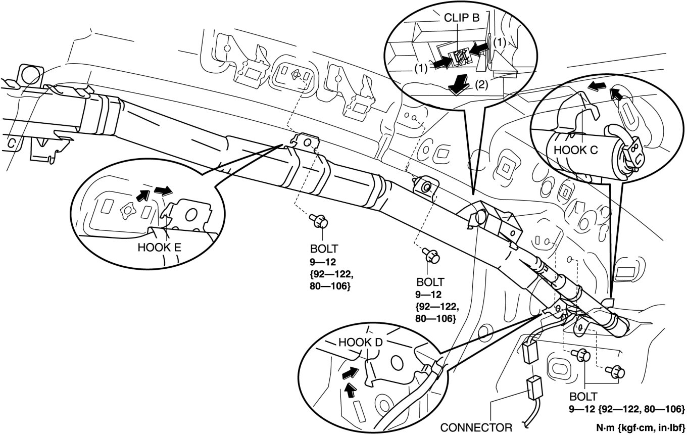 20. Pull hook E in the direction shown in the figure and remove it from the body.