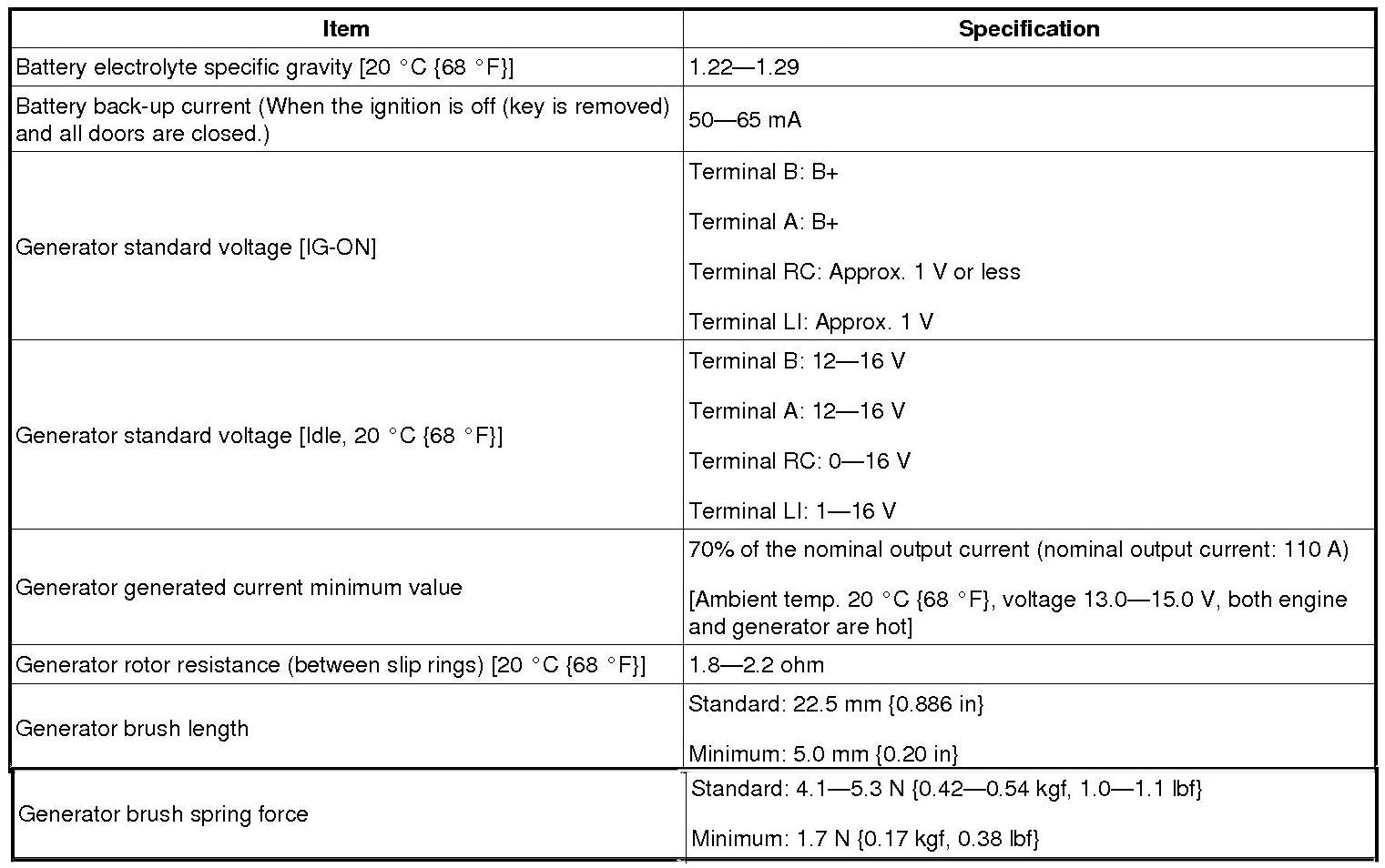 Charging System: Specifications