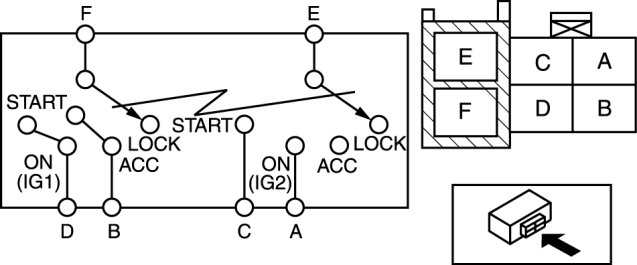 - If not as indicated in the table, replace the ignition switch.