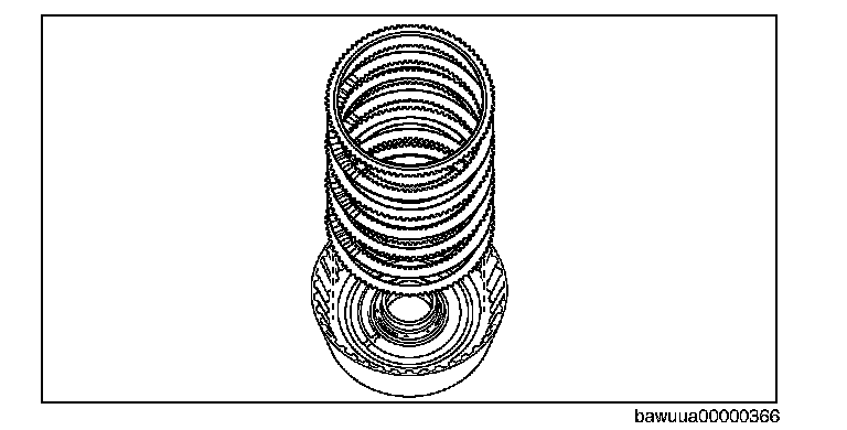 9. Install the driven plates, drive plates and the retaining plate in the following order to the C3 clutch drum as shown in the figure.