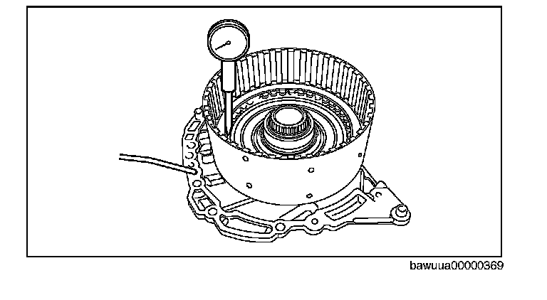 11. Install the C3 clutch component to the oil pump and set a dial indicator as shown in the figure.