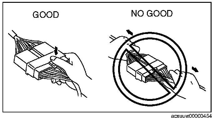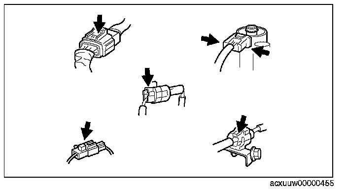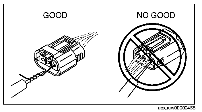 ^ Inspect the terminals of waterproof connectors from the connector side since they cannot be accessed from the wiring harness side.