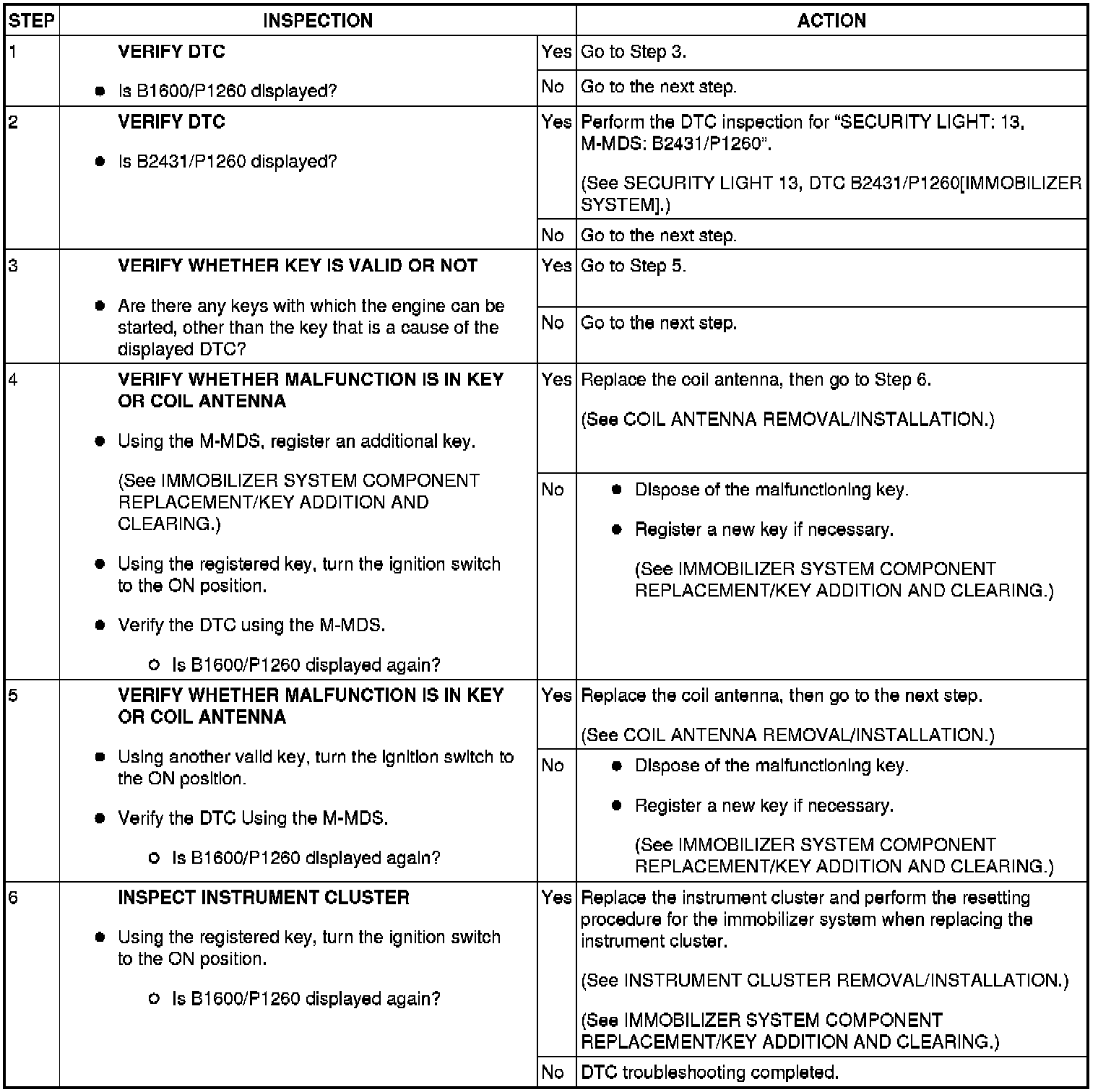 SECURITY LIGHT 13, DTC B1600/P1260 [IMMOBILIZER SYSTEM]