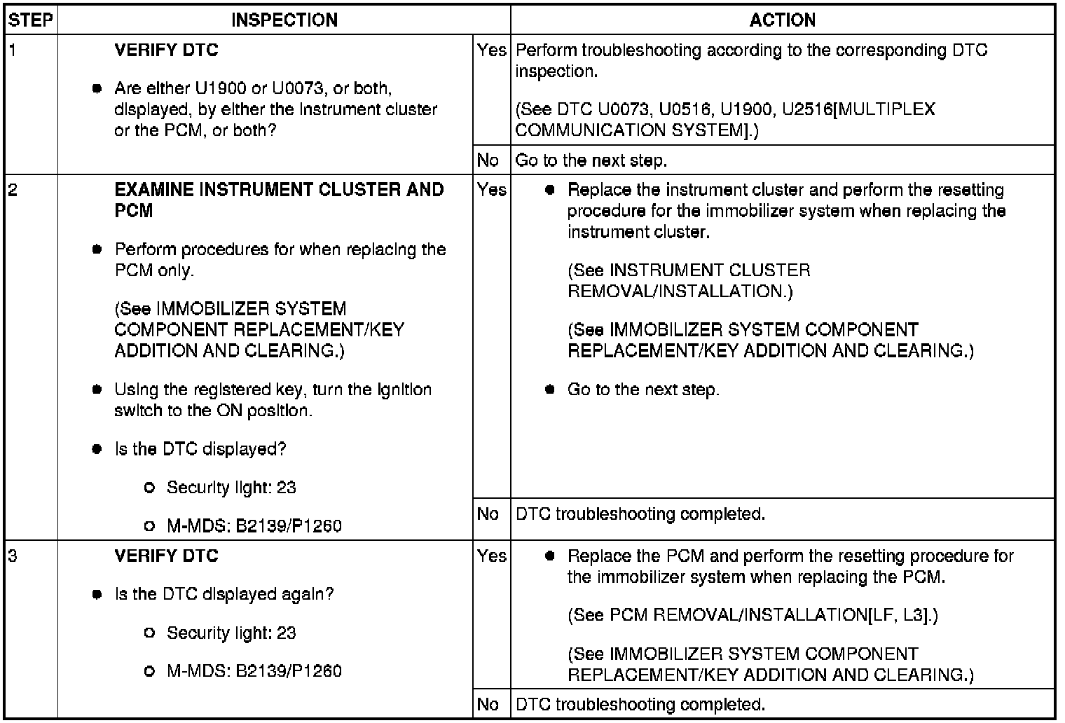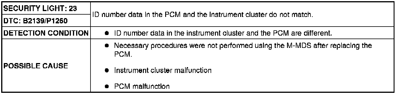 SECURITY LIGHT 23, DTC B2139/P1260 [IMMOBILIZER SYSTEM]