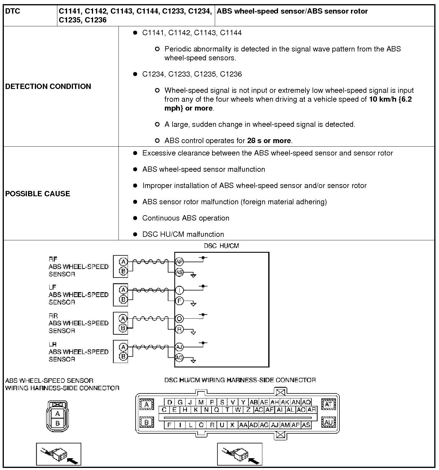 DTC C1141, C1142, C1143, C1144, C1233, C1234, C1235, C1236 [DYNAMIC STABILITY CONTROL (DSC)]