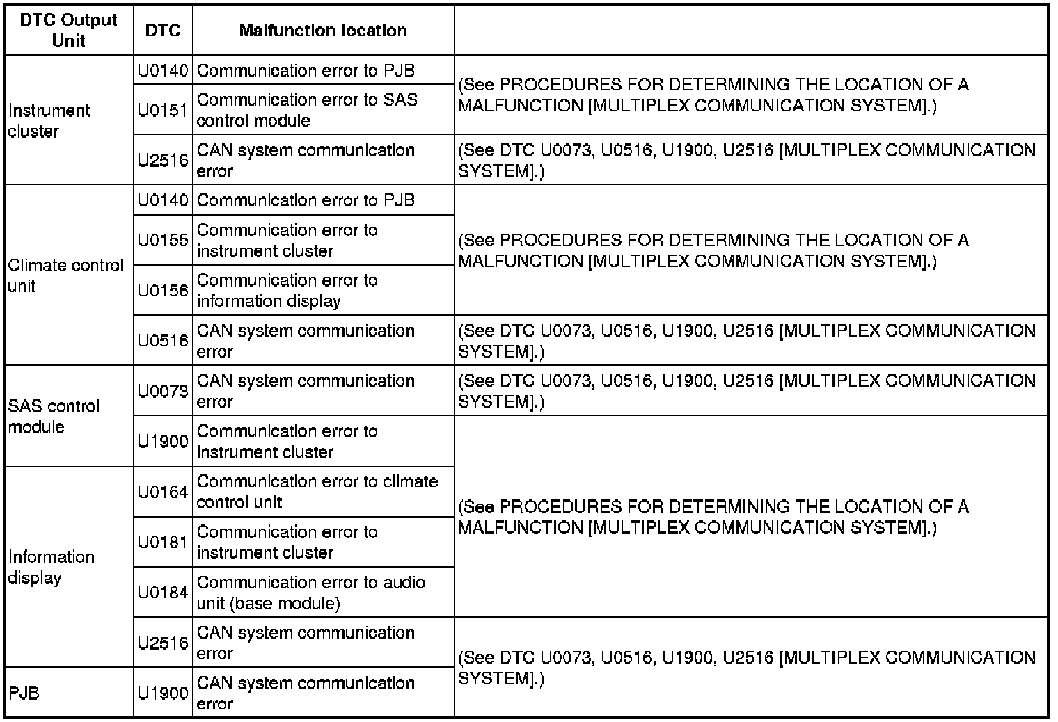 DTC TABLE [MULTIPLEX COMMUNICATION SYSTEM]