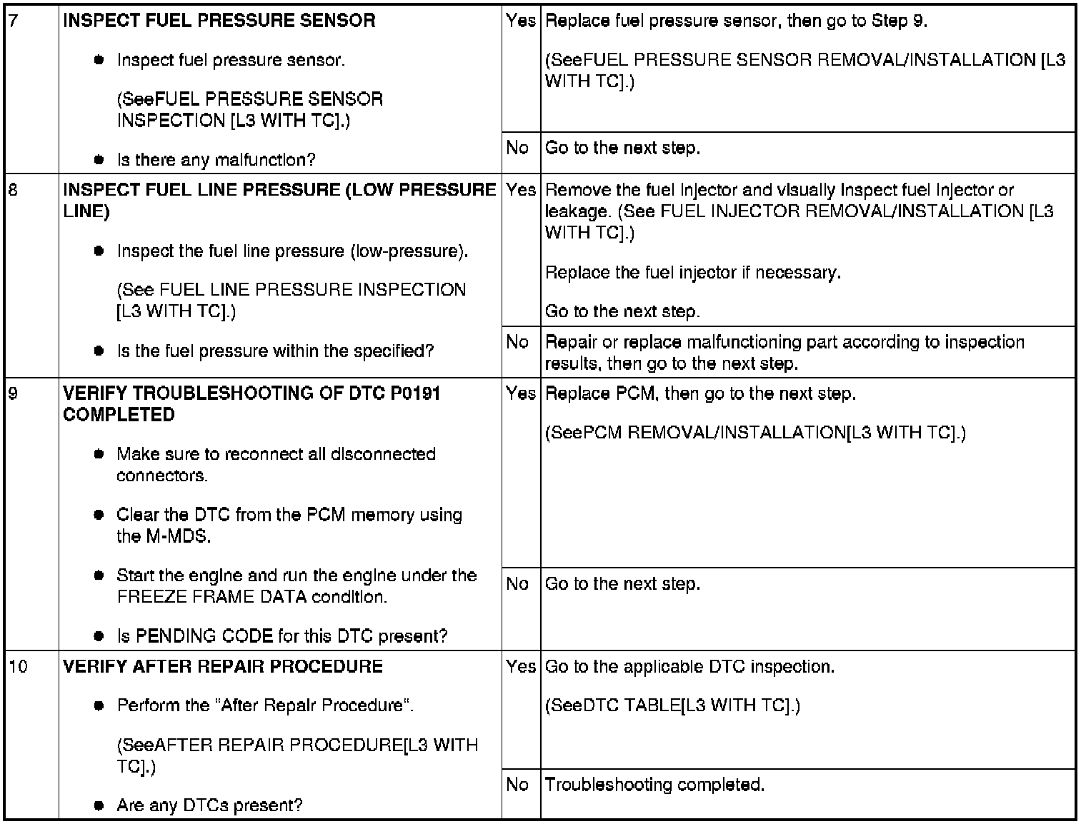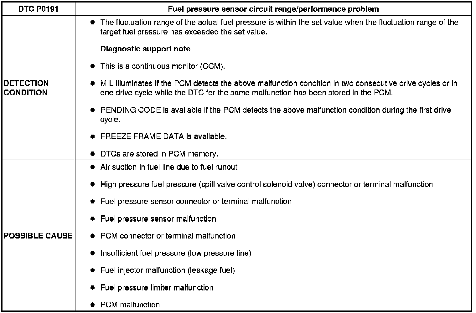 DTC P0191 [L3 WITH TC]