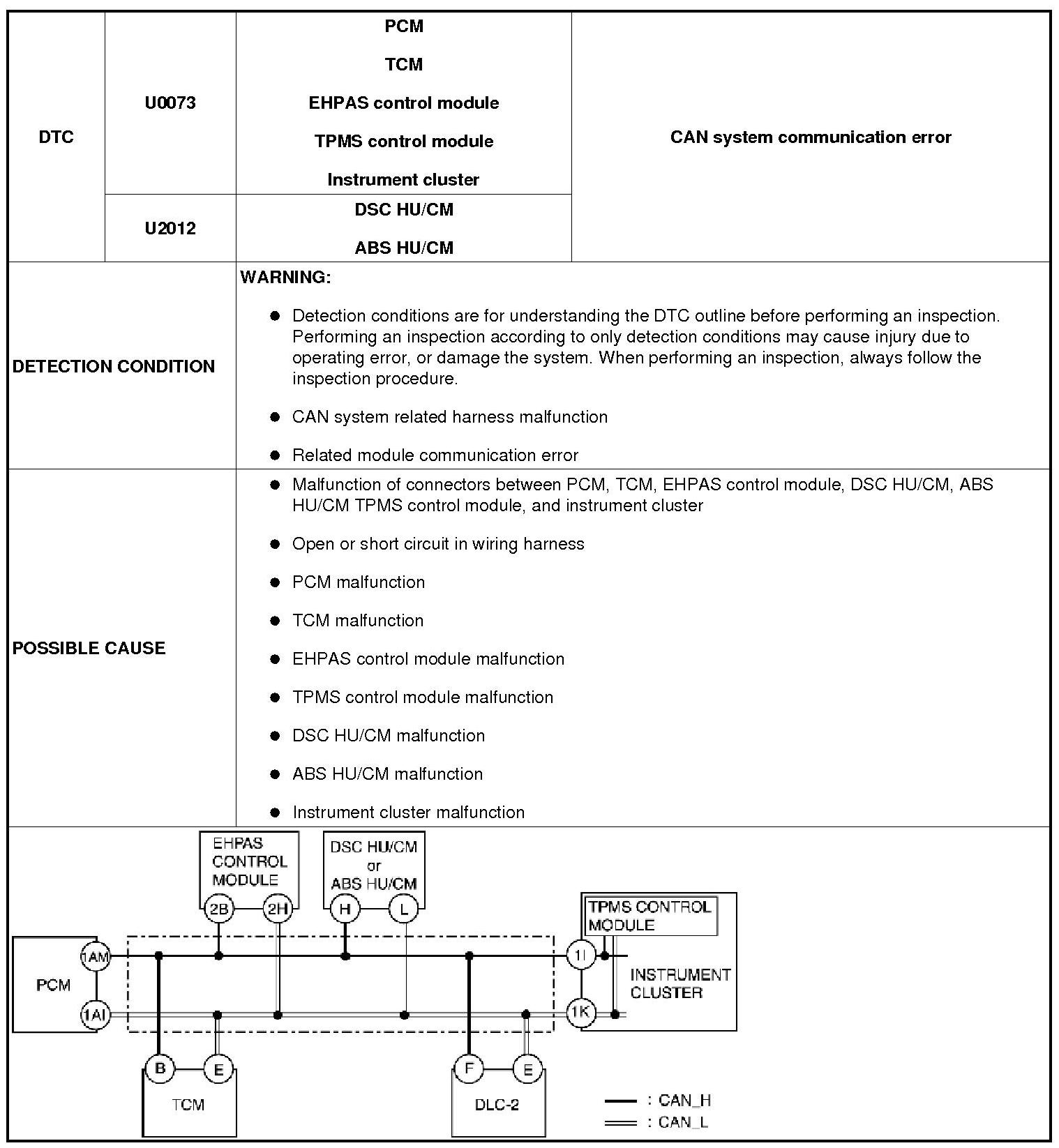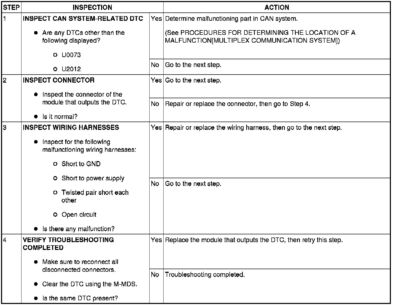 DTC U0073, U2012 [MULTIPLEX COMMUNICATION SYSTEM]