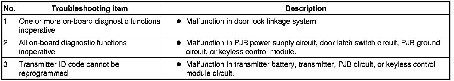 Symptom Troubleshooting Chart [Keyless Entry System]