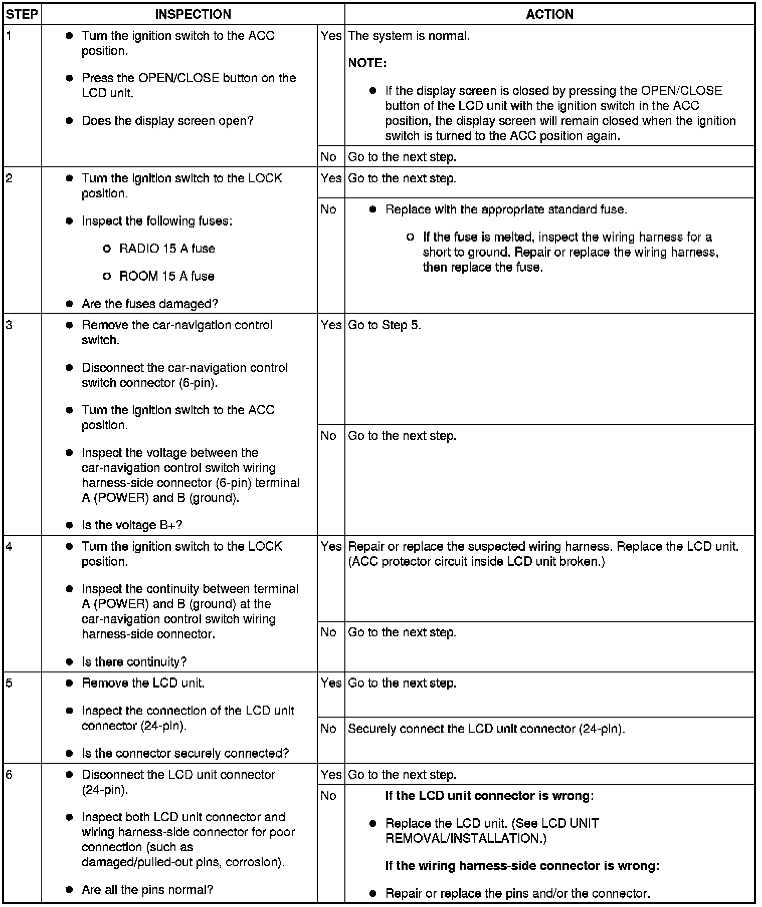 NO.1 DISPLAY SCREEN DOES NOT OPEN EVEN IF THE IGNITION SWITCH IS TURNED TO THE ACC POSITION. [CAR-NAVIGATION SYSTEM]
