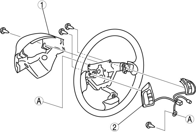 1. Install the audio control switch so that the audio control switch wiring harness passes behind the steering wheel as shown in the figure.