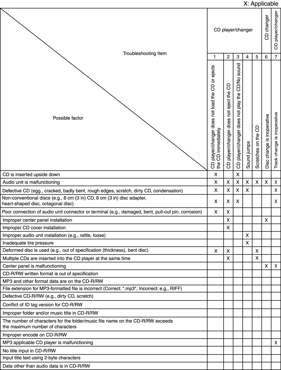 TROUBLESHOOTING INDEX [CD PLAYER/CHANGER]
